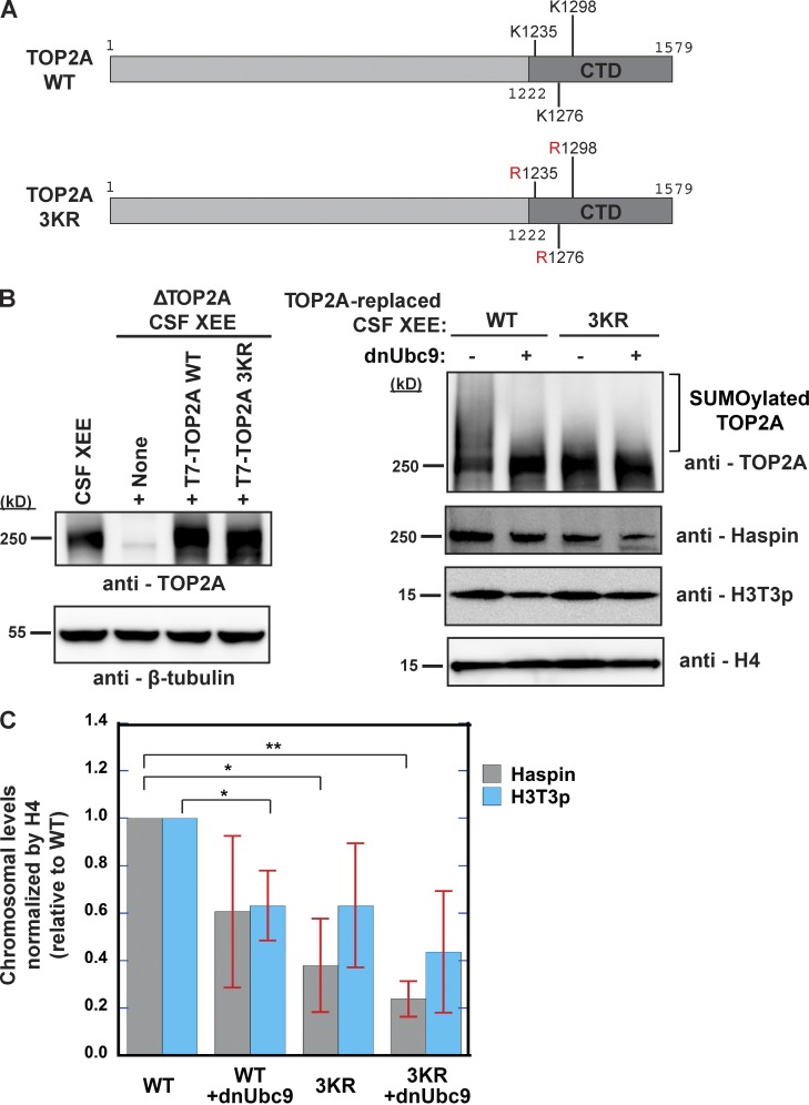 Ryu, SUMOylation of the C-terminal domain of DNA topoisomerase IIα regulates the centromeric localization of Claspin. 2015, Pubmed , Xenbase