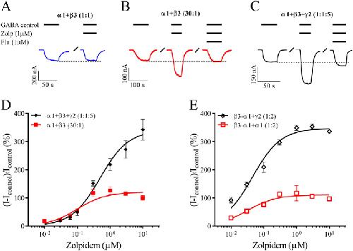 Sanna, Comparison of the effects of zaleplon, zolpidem, and triazolam at various GABA(A) receptor subtypes. 2002, Pubmed , Xenbase