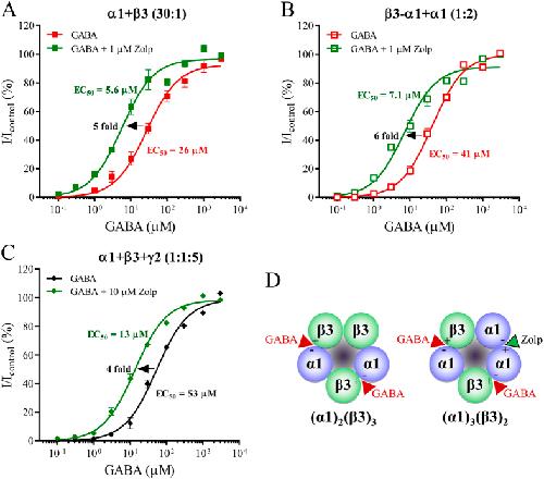 Zolpidem is a potent stoichiometry-selective modulator of α1β3 GABAA receptors: evidence of a novel benzodiazepine site in the α1-α1 interface.