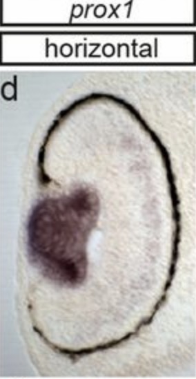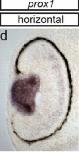 prox1 (prospero homeobox 1 ) gene expression in the sectioned eye of X. laevis embryo, assayed via in-situ hybridization, NF stage 42.