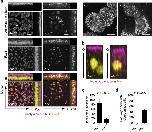 Figure 2. AhR deficiency affects both multiciliated cell commitment and cilia organization.(a) Immunofluorescent staining of acetylated α-tubulin (cilia, violet) and Foxj1 (yellow) in wt and Ahr−/− mTEC cultures at 9 days of ALI. Scale bars, 20 μm. Dashed boxes indicate insets (i,ii). Scale bars, 5 μm (for insets i and ii). Data representative of two independent experiments. (b) Immunofluorescent staining of acetylated α-tubulin (cilia, violet) and Foxj1 (yellow) in Ahr+/+ and Ahr−/− mTEC cultures following 9 days of ALI. Caption of the z projection of a single multiciliated cell showing distribution of the acetylated α-tubulin staining in the cytoplasm. Scale bars, 2 μm. Data representative of two independent experiments. (c) Number of Foxj1+ cells per field in AhR-sufficient and AhR-deficient mTEC cultures at day 9 of ALI. Mean±s.e.m.; Student's t-test (unpaired, two-tailed). n=5 random fields per group, data from two independent experiments. (d) Fraction of Foxj1+ cells bearing a disorganized pattern of cilia (uneven distribution on the apical surface; intracytosolic staining of acetylated α-tubulin) in Ahr+/+ and Ahr−/− mTEC cultures after 9 days of ALI. Mean±s.e.m.; Student's t-test (unpaired, two-tailed). n=5 random fields per group, data from two independent experiments.