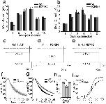 Figure 5. pH-gating of R348H channels expressed in astrocyte-like cells.Sample current traces for WT (a) and R348H (b) channel expressed in U251 cells, and recorded in the whole-cell configuration by applying voltage ramps from −140 to +30 mV (holding potential of −80 mV), immediately after the establishment of the whole-cell configuration (pHi7.2), after 10 min (pHi6.1), and following external BaCl2 application (pHi6.1 + 100 μM Ba2+). Both cells were recorded using an intracellular pipette solution having a pH of 6.1. (c,d) Representative time courses of WT (c) and R348H (d) currents recorded at −100 mV (normalized to the current recorded immediately after the establishment of the whole-cell configuration), using a pipette solution with pH of either 7.2 (black circles) or 6.1 (grey circles). (e) Plot of the mean fractional WT and R348H current inhibition by an intracellular pH of either 7.2 or 6.1. The fractional current reduction was estimated at −100 mV and calculated as 1− (I10 min/I0 min), in experiments similar to those shown in panels a–d. (f) Plot of the mean WT and R348H current density at −100 mV of applied potential. |