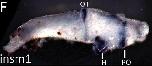 insm1 (insulinoma associated 1) gene expression in Xenopus laevis brain (isolated), assayed via in situ hybridization, NF stage 45, lateral view, anteriorright, dorsal up.