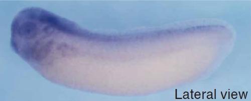 hace1 (HECT domain and ankyrin repeat containing E3 ubiquitin protein ligase 1) gene expression in Xenopus tropicalis embryo, assayed via in situ hybridization, NF stage 28, lateral view, anterior left, dorsal up.