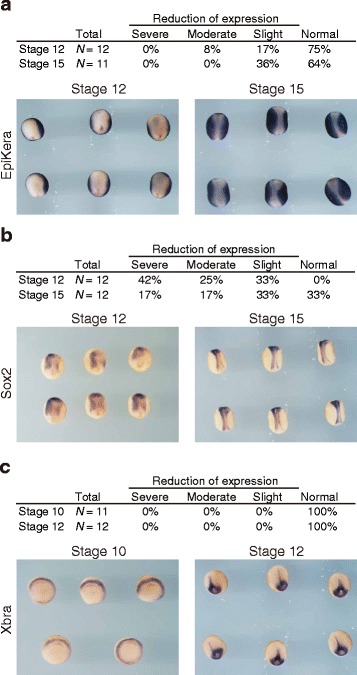 N, number of total right and left sides of embryos we evaluated. The right side and left side of each embryo were separately evaluated. c