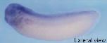 hace1 (HECT domain and ankyrin repeat containing E3 ubiquitin protein ligase 1) gene expression in Xenopus tropicalis embryo, assayed via in situ hybridization, NF stage 3, lateral view, animal up.