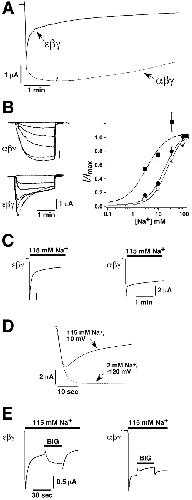 to high (115 mM) Na concentration. D, self-inhibition is not due to an