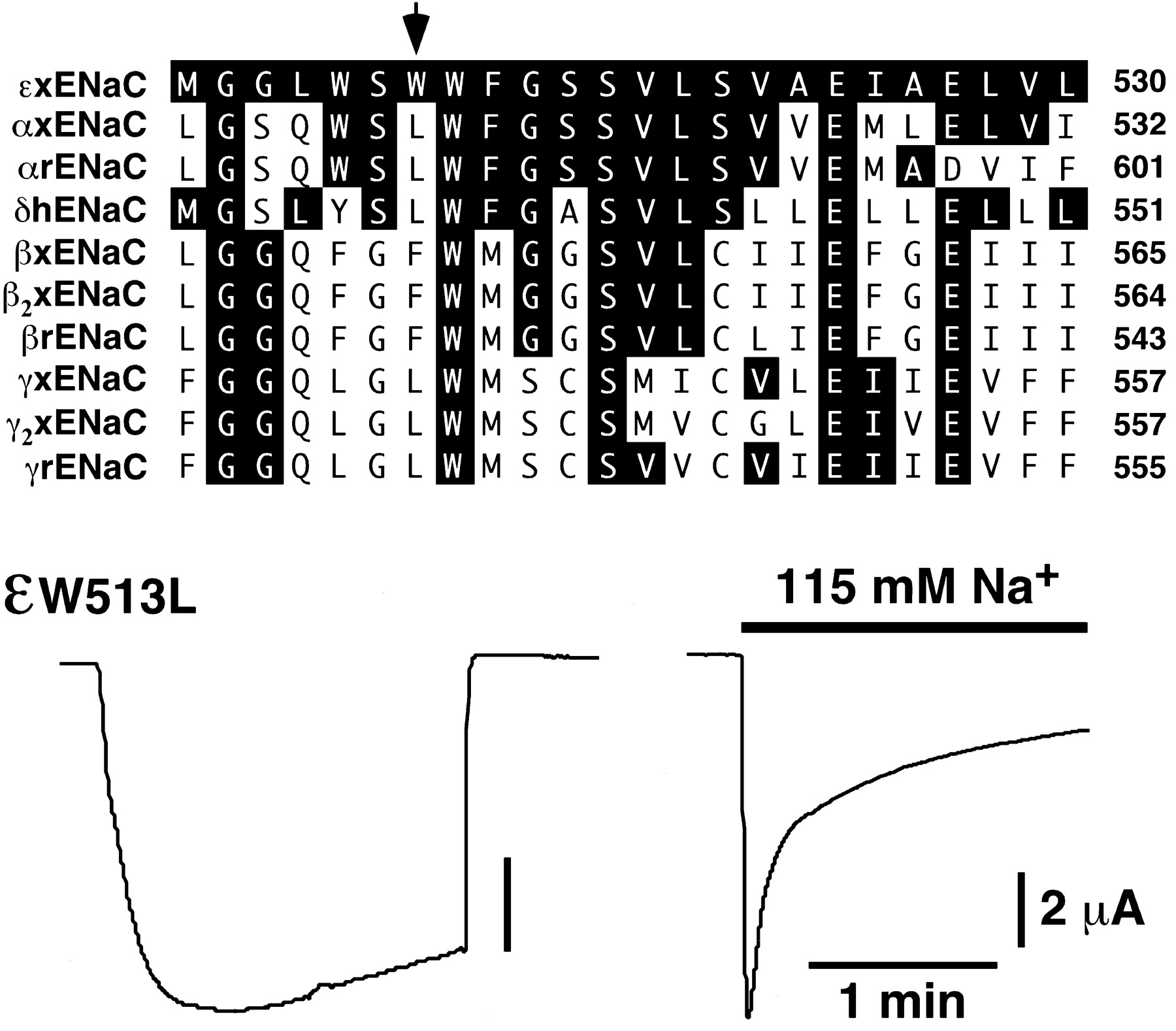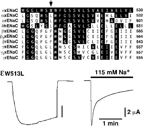 apparent amiloride affinity of xENaC. Upper, sequence alignment