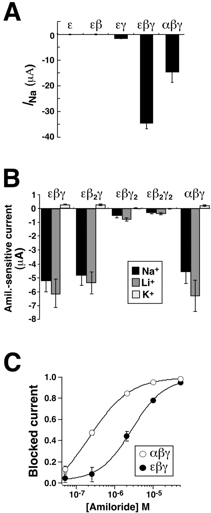 of amiloride (50 M)-sensitive currents in Xenopus oocytes injected