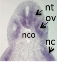 gna13 (guanine nucleotide binding protein (G protein), alpha 13) gene expression in Xenopus tropicalis embryo, assayed via in situ hybridization, NF stage 27, transverse section, dorsal up.