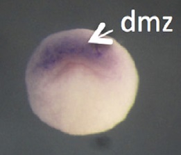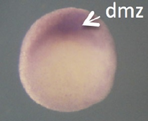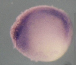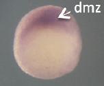 gna13 (guanine nucleotide binding protein (G protein), alpha 13 ) gene expression in Xenopus tropicalis embryo, assayed via in situ hybridization, NF stage 10.5, blastoporal view, dorsal up.