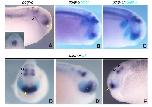 sense riboprobe on a stage 3 embryo, lateral view. (B*) Stage 10,5 lateral