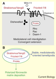 Genes referenced: daam1 dvl1 fn1 fzd7 fzd8 gpc4 prickle1 rac1 rhoa vangl2 wnt11