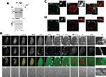 Fig. 17. Anti-γ-tubulin antibodies partially recognize chromatin-associated γ-strings. (A, B) The fluorescence images show representative images of immunostained GFP-γ-tubulin (green; γTubGFP) with an anti-γ-tubulin antibody (red; γTubAb; T3320) in interphase (A) and mitotic (B) U2OS cells stably expressing both γTUBULIN shRNA (shRNA) and GFP-γ-tubulinresist (γTubGFP). Four different antibodies were tested (ab27074, T5192, T3320 and T6557) and the one that best recognized chromatin-associated γ-tubulin (T3320) is shown. (A) The specificity of the polyclonal anti-γ-tubulin antibody (T3320) used was tested in U2OS cells stably expressing both γTUBULIN shRNA and GFP-γ-tubulinresist (γTUBULINsh-U2OS-GFP-γ-tubulinresist cells). The dashed line follows one of three γTUBULINsh-U2OS-GFP-γ-tubulinresist cells with low expression of both endogenous γ-tubulin and GFP-γ-tubulinresist. Arrows and arrowheads indicate a cell with high and low expression of γ-tubulin and the location of centrosomes, respectively. (C) Structured illumination images of a fixed U2OS immunostained with an anti-γ-tubulin (T6557). (A-C) White borders show the magnified areas displayed in the insets. Scale bars, 10 μm. (B, C) Nuclei were detected with DAPI (blue). (D) Total lysate from U2OS and U2OS cells stably expressing γTUBULIN shRNA (shγTUB) or NGFP-γ-tubulin were first analyzed by WB with a polyclonal anti-γ-tubulin antibody (385Ab) and reprobed with a polyclonal anti-γ-tubulin antibody (131Ab), a mixture of two anti-γ-tubulin (T5192 and T3320) or of two anti-GFP antibodies (sc-53882 and sc-8334) and an anti-α-tubulin antibody. Arrowheads indicate the 60-kDa and the 90-kDa bands recognized by 385Ab (n = 3). Numbers on WBs indicate the level of depletion or enrichment of the amount or proteins recognized by the indicated antibody relative to control. To adjust for differences in protein loading, the protein concentration of the indicated proteins was determined by its ratio with endogenous γ-tubulin for each sample. The protein ratio in control extracts was set to 1. |