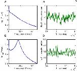 Figure 7âfigure supplement 2. Random fluctuations are distinct from stochastic oscillations.(A, C) The power spectrum of HES1 protein oscillations calculated using the average of 1000 simulations with the dSSA (blue), for m1 = 3.5, r1 = 600 and m1 = 1.5, r1 = 600, respectively. (B, D) HES1 protein dynamics after the accumulation of miR-9 simulated with the dSSA to (A) and (C), respectively.DOI: http://dx.doi.org/10.7554/eLife.16118.036 |