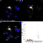 Figure 1—figure supplement 3. Quantification of GFP signal intensity in Tau-GFP NS cells.Following smFISH in Tau-GFP NS cells, GFP protein was detected using anti-GFP primary (Life Technologies A11122) and goat anti-rabbit Alexa Fluor 488 secondary antibody (Life Technologies A11008). Z-stacks were sum projected in FIJI, nuclei manually segmented, and mean signal intensity (sum intensity/segmented area) measured. Cells with mean GFP intensity >12000 were classed as GFP positive. (A, B, C) Sample image of a field of Tau-GFP NS cells with DAPI stained nuclei (blue) and immunofluorescent detection of GFP (white). One cell has high mean GFP signal (24555, GFP+ve); other cells show only low signal (∼4000) that may be due to autofluorescence and/or some non-specific antibody binding. (D) Mean GFP intensity measurements for all GFP-ve and GFP+ve cells analysed for Hes1 smFISH in Figure 1E, F. Source data contained in Figure 1—source data 4.DOI: http://dx.doi.org/10.7554/eLife.16118.010 |