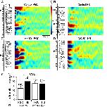 Figure 6. NMDA receptor blockade, starting at stage 39, disrupts the normal degree of spatial segregation between RGC and HB synaptic inputs: sample image plots.(A) Control RGC-evoked FPs with corresponding image plot. Main RGC-evoked sink is localized to the most distal end of the neuropil, with an additional minor sink in the proximal region. (B) Control HB-evoked FPs with corresponding image plot. Main HB sink is localized to the proximal region of the tectal neuropil. (C) MK-801 RGC-evoked FPs with corresponding image plot. Main RGC-evoked sink now appears in the proximal region of the neuropil instead of the distal region. (D) MK-801 HB-evoked FPs with corresponding image plot. Main HB-evoked sink now appears in both the distal region and proximal region of the tectal neuropil. Arrowheads refer to the site of the largest peak FP. (E) Bar graph summarizing the location of major RGC- and HB- evoked CSD sinks along the distal-proximal axis. For control tecta, the distance between the major RGC- and HB-evoked CSD sinks is significant, but not for tecta exposed to MK801 at stage 39.DOI: http://dx.doi.org/10.7554/eLife.20502.008 |