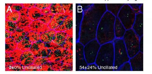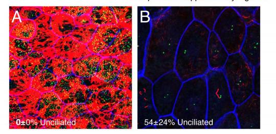 that are multiciliated in the control and in the morphant is indicated in the lower lefthand corner.