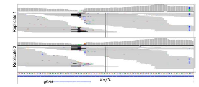 replicate experiments on animal caps injected with Foxj1 gRNA1. Reads with significant