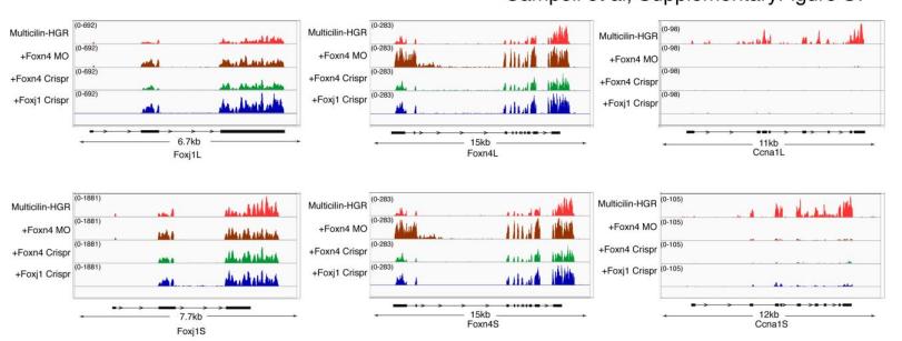Shown are screen shots of the two homeologs for foxn4, foxj1 and ccna1 in the Xenopus