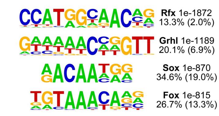 Figure S10: Frequency of Fox and Rfx motifs in Foxn4 binding sites
