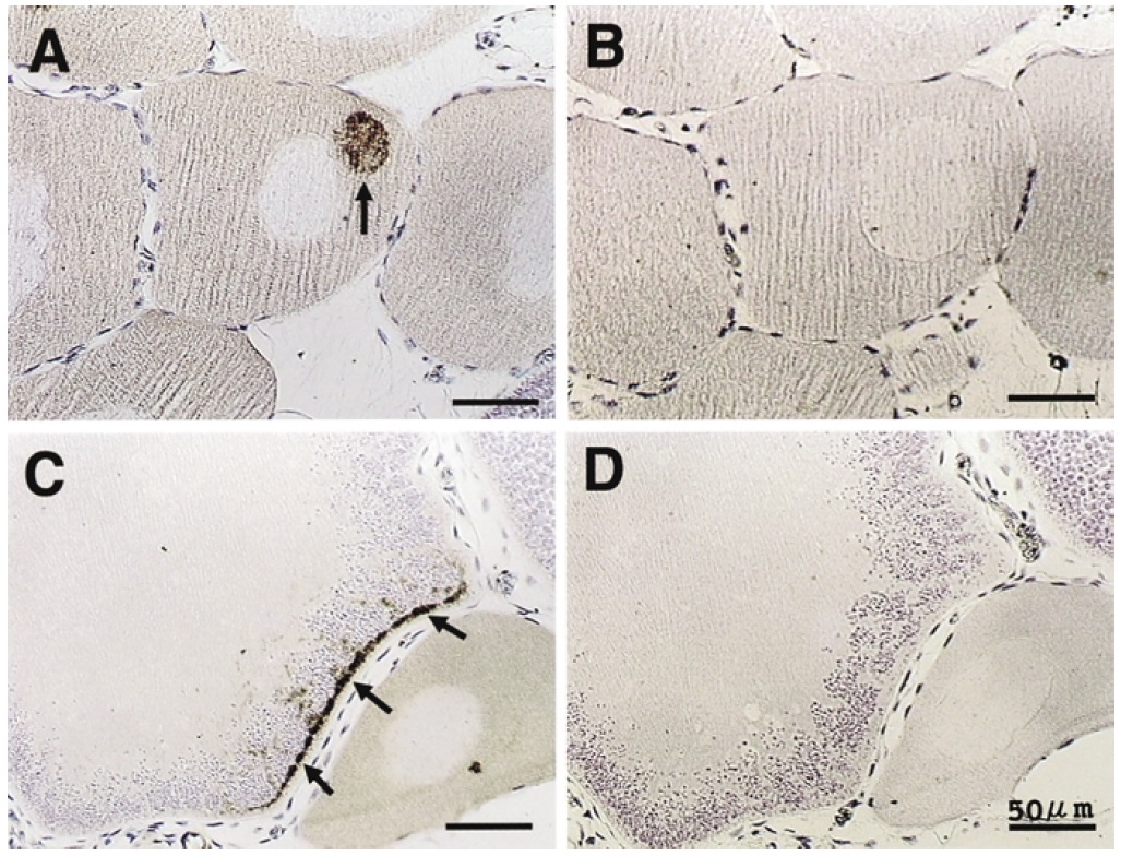 and (D) show immunostained