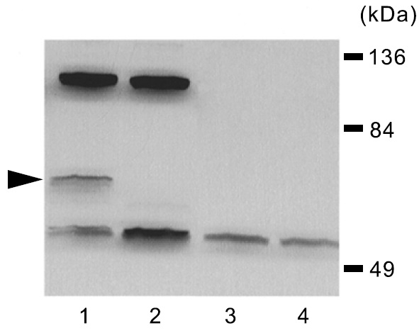 respectively. The arrow indicates the immunoreactive 57 kDa