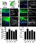 Inhibition of calpain activity promotes RB peripheral axon outgrowth in situ. Open-book skin preparations were used to measure axon outgrowth in situ. a, b, GFP, GFP-capn1-H272A, GFP-FAK-V744G, or GFP-talin-L432G was injected in a single dark blastomere at the eight-cell stage (a) driving expression into one side of the dorsal spinal cord (b). NT, neural tube; NC, notochord. câg, The skin of 26 hpf embryos was removed, and preparations were labeled with NCAM to observe RB peripheral projections in the skin and flat mounted for confocal imaging. câg, Representative images of HNK-1 labeling in skin expressing GFP (c), GFP-capn1-H272A (d), GFP-talin-L432G (e), GFP-FAK-V744G (f), or coexpressing GFP-talin-L432G and TagRFP-FAK-V744G (only GFP shown; g). Dashed line represents the dorsal midline. h, Quantification of the maximum axon displacement per 100 μm spinal cord segment on the injected side vs control side for each condition. i, Branching was quantified as the number of axon terminals (growth cones) per 100 μm segment of spinal cord. Scale bar, 50 μm. n > 100 segments and n > 10 embryos for all conditions. *p < 0.05, MannâWhitney U test.