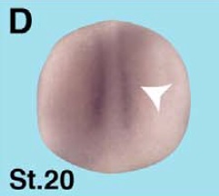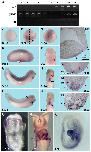 Fig. 2. : Expression of rcsd1 during embryogenesis. A. Temporal expression of rcsd1 at different stages of Xenopus development. Gapdh was used as loading control. Negative controls (-RT) were performed without reverse transcriptase (RT). Rcsd1 is weakly expressed maternally. Zygotic rcsd1 expression starts at stage 13. B-N. Spatial expression of rcsd1 at different developmental stages as indicated in Xenopus. Rcsd1 expression is first detected in the common cardiac progenitor at stage 20 (black arrowhead). Cardiac expression persists until later stages (black arrowheads). In addition, rcsd1 transcripts were detected in the somites (white arrowheads) and myeloid cells (red arrowheads). KN. Cross section through the cardiogenic region of Xenopus embryos as indicated by the black dashed lines in C, E, G and I, respectively. Expression in cardiac tissue is detected at stage 20 (K, sagittal section), 24 (L, transversal section), 30 (M, transversal section)
