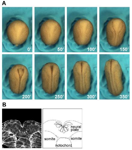 (A) Time-lapse imaging data of the neural tube closure of a Xenopus laevis embryo,
