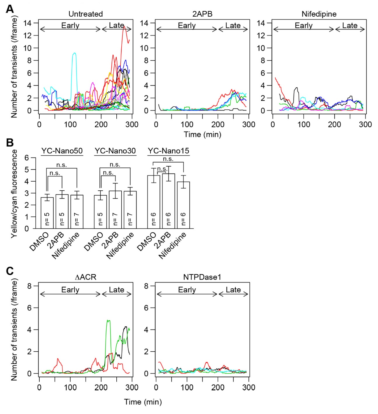 (2APB); 88 cells, 12 embryos (nifedipine).