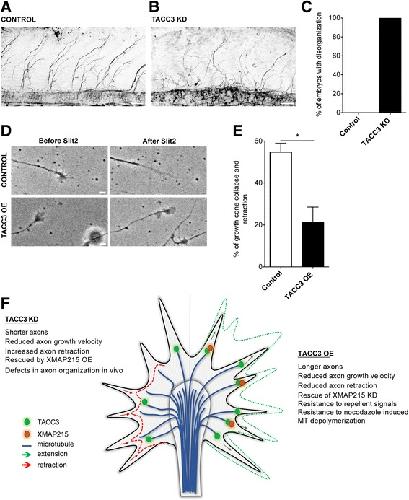 TACC3 is a microtubule plus end-tracking protein that promotes axon elongation and also regulates microtubule plus end dynamics in multiple embryonic cell types.