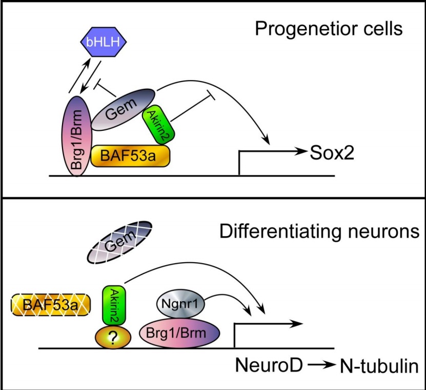 development by Akirin2. In neural progenitor cells, Akirin2 acts antagonistically to Geminin in