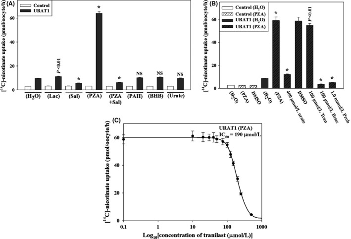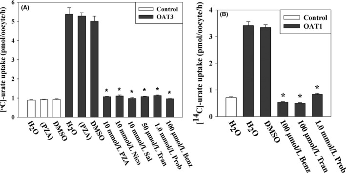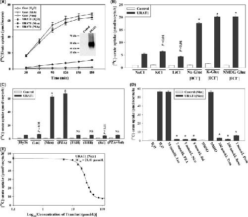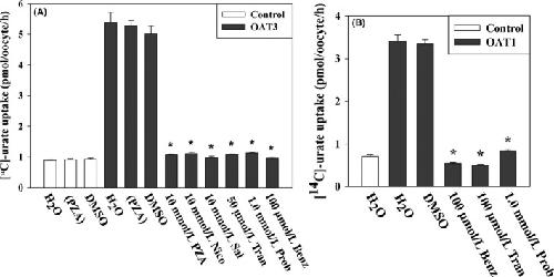 Iwanaga, Concentration-dependent mode of interaction of angiotensin II receptor blockers with uric acid transporter. 2007, Pubmed , Xenbase