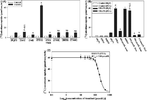 Uricosuric targets of tranilast.