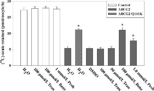 Woodward, Identification of a urate transporter, ABCG2, with a common functional polymorphism causing gout. 2009, Pubmed , Xenbase