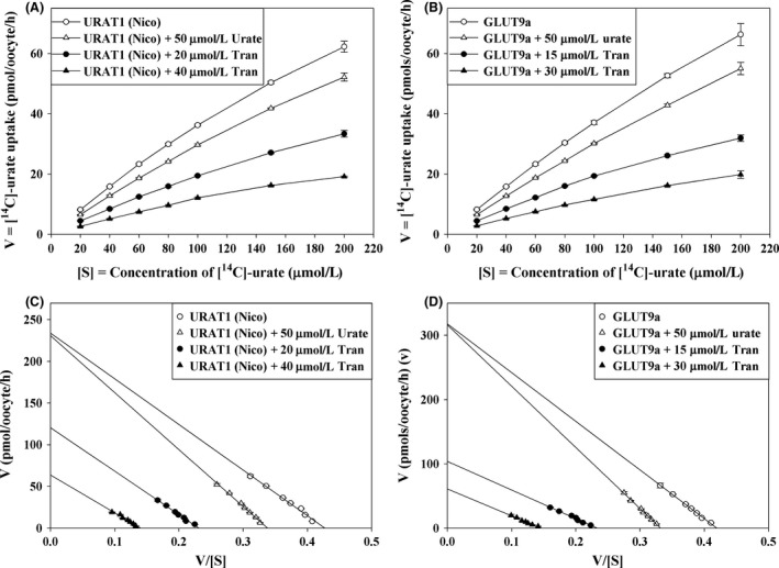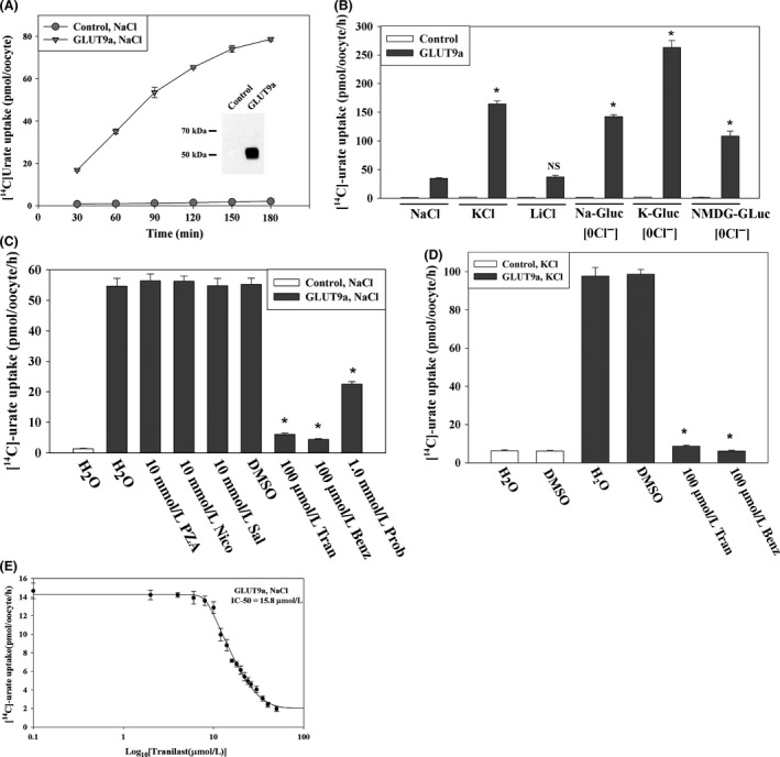 Witkowska, Human SLC2A9a and SLC2A9b isoforms mediate electrogenic transport of urate with different characteristics in the presence of hexoses. 2012, Pubmed , Xenbase