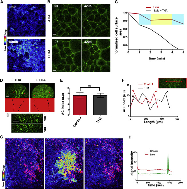 (B) Stills from time-lapse recordings (Movie S9) of gastrula embryos expressing Lulu-GFP with and without THA. Imaging began 15 min after THA treatment. Scale bars, 20 μm.