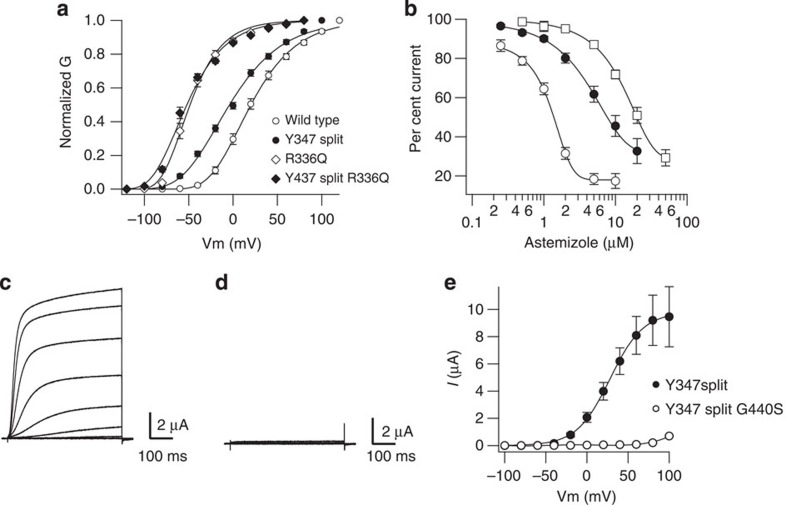 Voltage-dependent gating of KCNH potassium channels lacking a covalent link between voltage-sensing and pore domains.