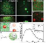 Figure 1. Non-uniform distribution of nuclear bodies is dependent on a nuclear actin meshwork.(a,b) Top images are maximum intensity XY projections of the entire nucleus containing nucleoli labeled with NPM1::GFP (green) and HLBs labeled with TagRFP::coilin (red); bottom images are maximum intensity XZ projections. Scale bar = 100 μm. (a) An emulsion of nuclear bodies is stabilized by a nuclear actin network. (b) A few massive nuclear bodies are found at the bottom -plane after actin disruption by Lat-A. (c,d) XY views of Lifeact::GFP labeled actin network (green) and NPM1::RFP labeled nucleoli (red) in untreated (c) and Lat-A treated nuclei (d). Scale bar = 20 μm. (e) Schematic showing how a nuclear body (red) is subjected to a downward gravitational force, but is held in place by an actin network (green). (f) Disruption of the actin network results in nuclear body sedimentation. Faded sphere represents initial position. (g) Schematic illustrating the distance, z0, as the difference from the center of the nucleolar distribution, znucleoli, and the centroid of the nucleus, zc. (h) The normalized number density, as a function of vertical z-position, where the lowest -position, = 0, corresponds to the bottom of the native nucleus (n = 43 nuclei). Inset contains comparison of normalized number density as a function of -position for untreated nuclei (filled symbols) and Lat-A treated nuclei (unfilled symbols) (n = 12 nuclei).