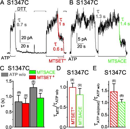 Csanády, Strict coupling between CFTR's catalytic cycle and gating of its Cl- ion pore revealed by distributions of open channel burst durations. 2010, Pubmed , Xenbase
