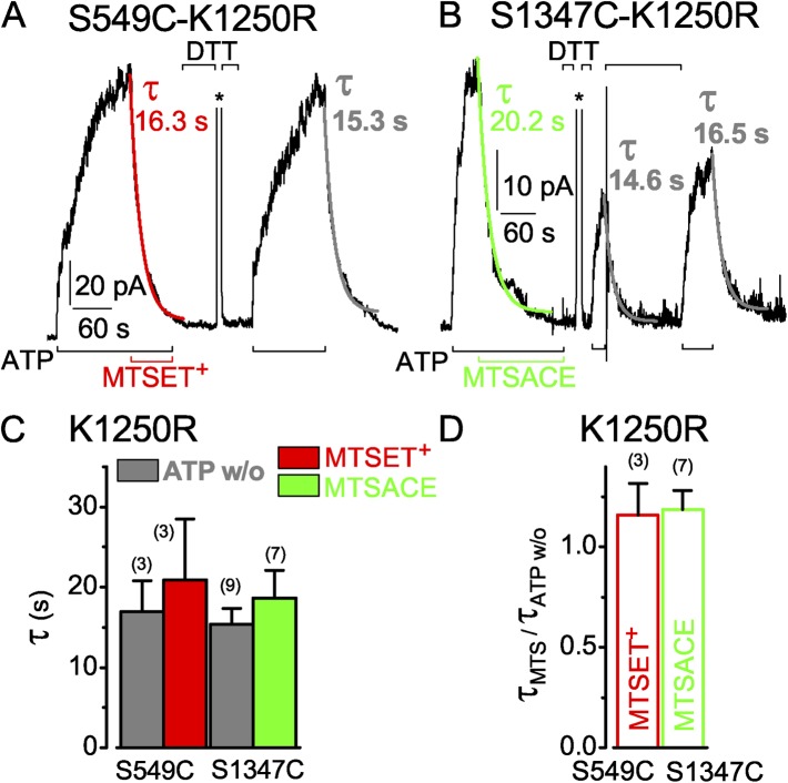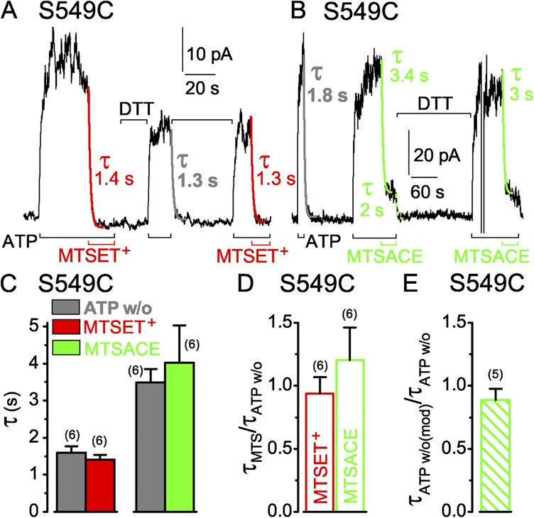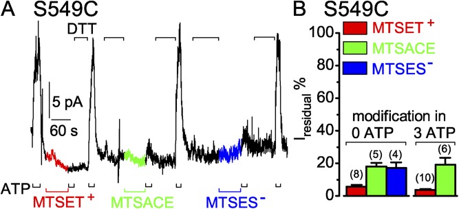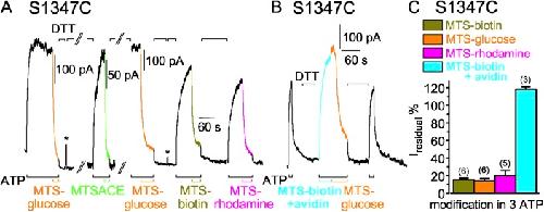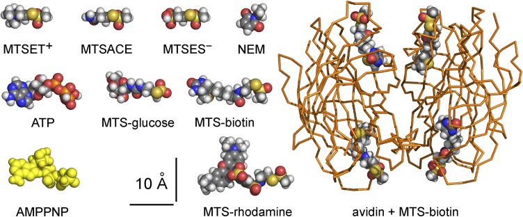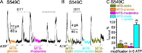 Cysteine accessibility probes timing and extent of NBD separation along the dimer interface in gating CFTR channels.