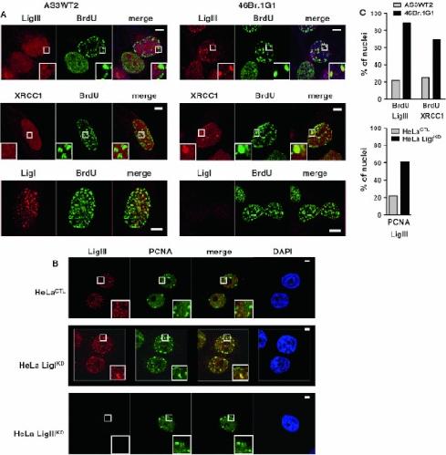 Soza, DNA ligase I deficiency leads to replication-dependent DNA damage and impacts cell morphology without blocking cell cycle progression. 2009, Pubmed