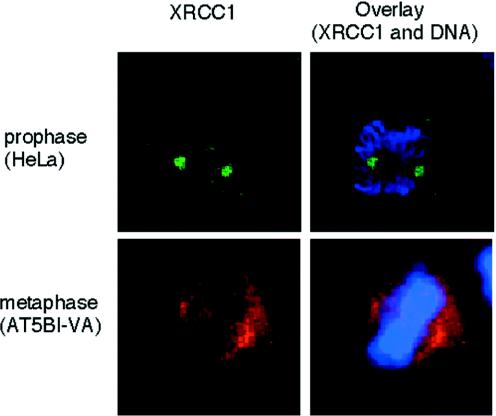 Translocation of XRCC1 and DNA ligase IIIalpha from centrosomes to chromosomes in response to DNA damage in mitotic human cells.