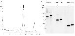 Figure 1—figure supplement 1. Pent constructs are biologically active in Drosophila, but XSMOC-1 protein is not detected in Drosophila following mRNA overexpression. (A–C) Adult Drosophila longitudinal wing vein (L1 to L5) patterns in (A) wild type; arrow indicates the position of the anterior crossvein between L4 and L5. (B) pent2-5/pentA17 mutant lacking pent where L5 is missing (C) Rescue of pent2-5/pentA17 phenotype by expression of Pent in a pent2-5/pentA17 background using the UAS/Gal4 system with brinker (brk)/Gal4 as the driver. (D) Immunoblot of Drosophila embryo extracts (10 μg/lane) from control yellow white (YW) Drosophila embryos spiked with XSMOC-1 (Lanes 1–5) as indicated, XSMOC-1 only (Lane 6), or Drosophila lines 4 (Lane 7) and 5 (Lane 8) overexpressing XSMOC-1 mRNA. (E) Coomasie-stained SDS-PAGE gel following protein transfer shown in (D), showing residual protein. The amount of protein in lane seven is notably more than that in other lanes, but the XSMOC-1 signal is nevertheless undetectable. DOI: http://dx.doi.org/10.7554/eLife.17935.004 |
