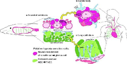 Evolution of the hypoxia-sensitive cells involved in amniote respiratory reflexes.