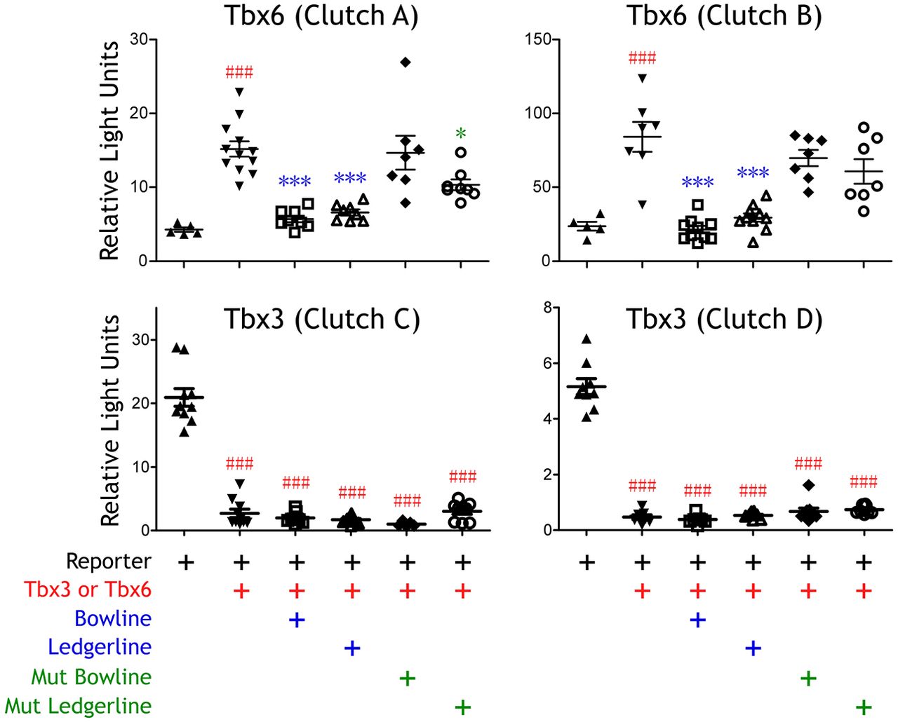 Ledgerline or mutants) does not affect Tbx3 reporter activity.