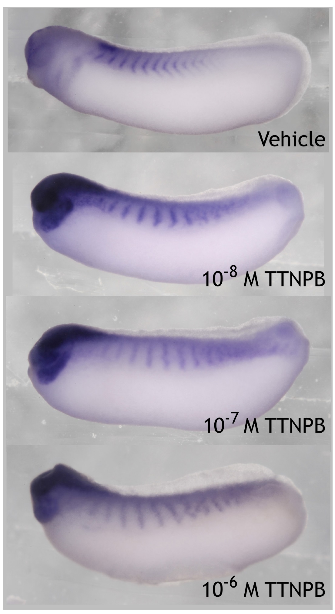 in embryos treated at stage 7/8 with 1 μM TTNPB, 1 μM AGN193109 or vehicle