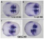 MOs rostrally shift somitomere markers Ripply2 (A) and Mespa/Thyl2 (B), and
