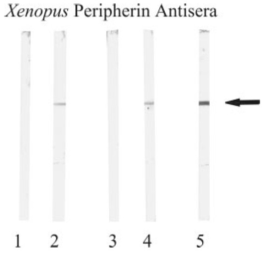 Fig. 5. Characterization of peripherin antisera on Western blots of